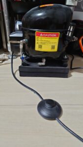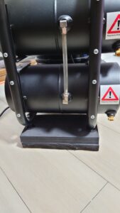 コンプレッサー本体の出来という部分ですが、初期ロットで問題になっていた、青いテープがずれてしまう問題。私のは初期ロットでは無かったのでテープではありませんでした。ただし!テープではなく塗装?されたような感じで、指で軽く触れると剝がれてきてしまう仕様になっていました。エアテックスに連絡はしたものの、情報ありがとう、次からは~的な返答だったので自分で青マジックでマーキングしなおしました。